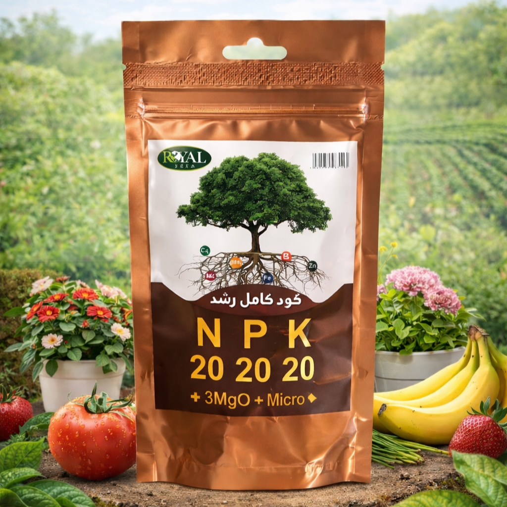 فرمول متعادل نیتروژن، فسفر و پتاسیم (20-20-20) ✔ محلول در آب و جذب سریع توسط گیاه