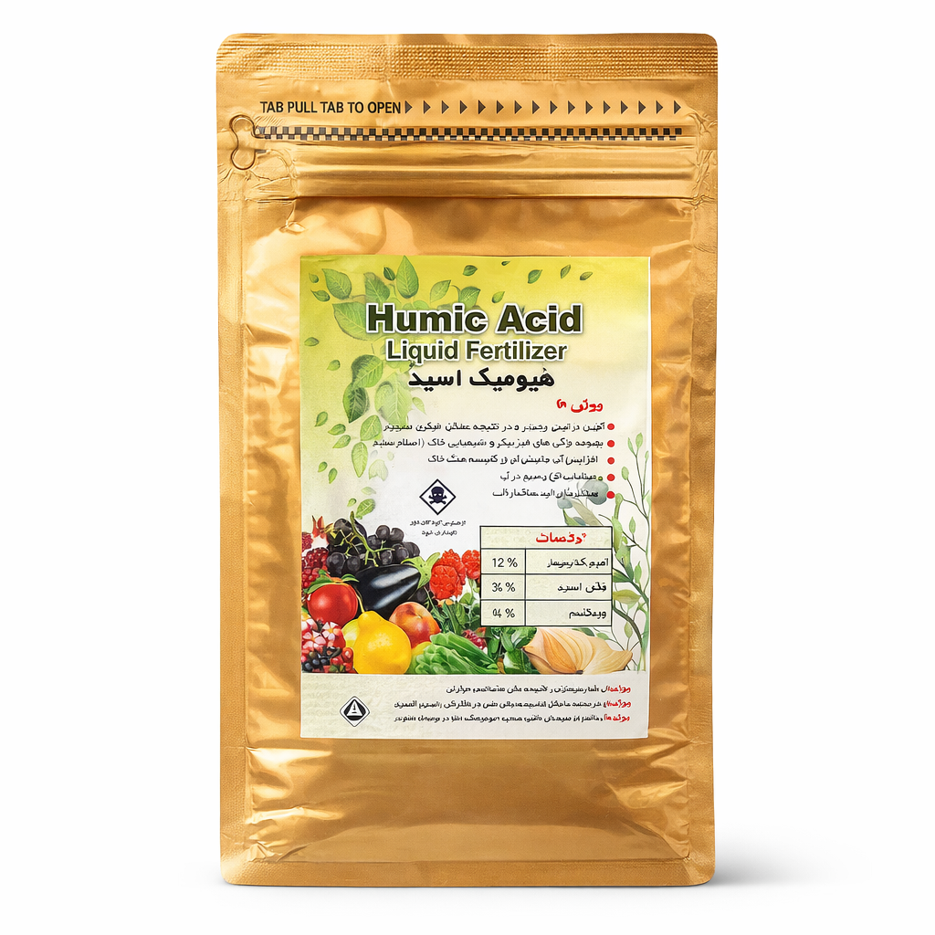 هیومیک اسید مادهای طبیعی است که از تجزیه بقایای گیاهی در خاک بهوجود میآید. این ترکیب باعث افزایش ظرفیت نگهداری آب، بهبود تهویه خاک و افزایش فعالیت میکروارگانیسمهای مفید میشود.