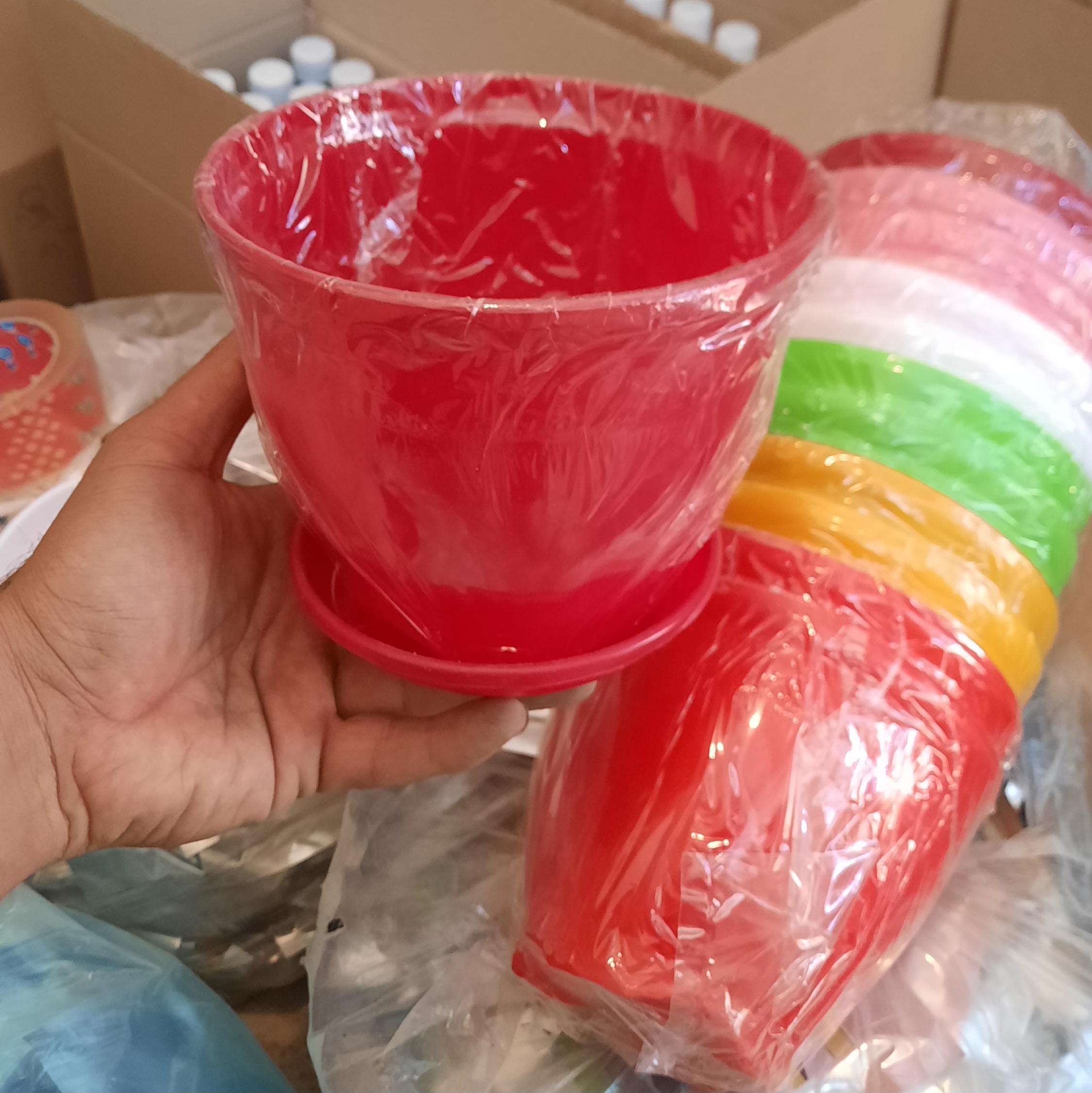 گلدان پلاستیکی رنگی مخصوص گیاهان آپارتمانی با کیفیت بسته ۱۲ تایی